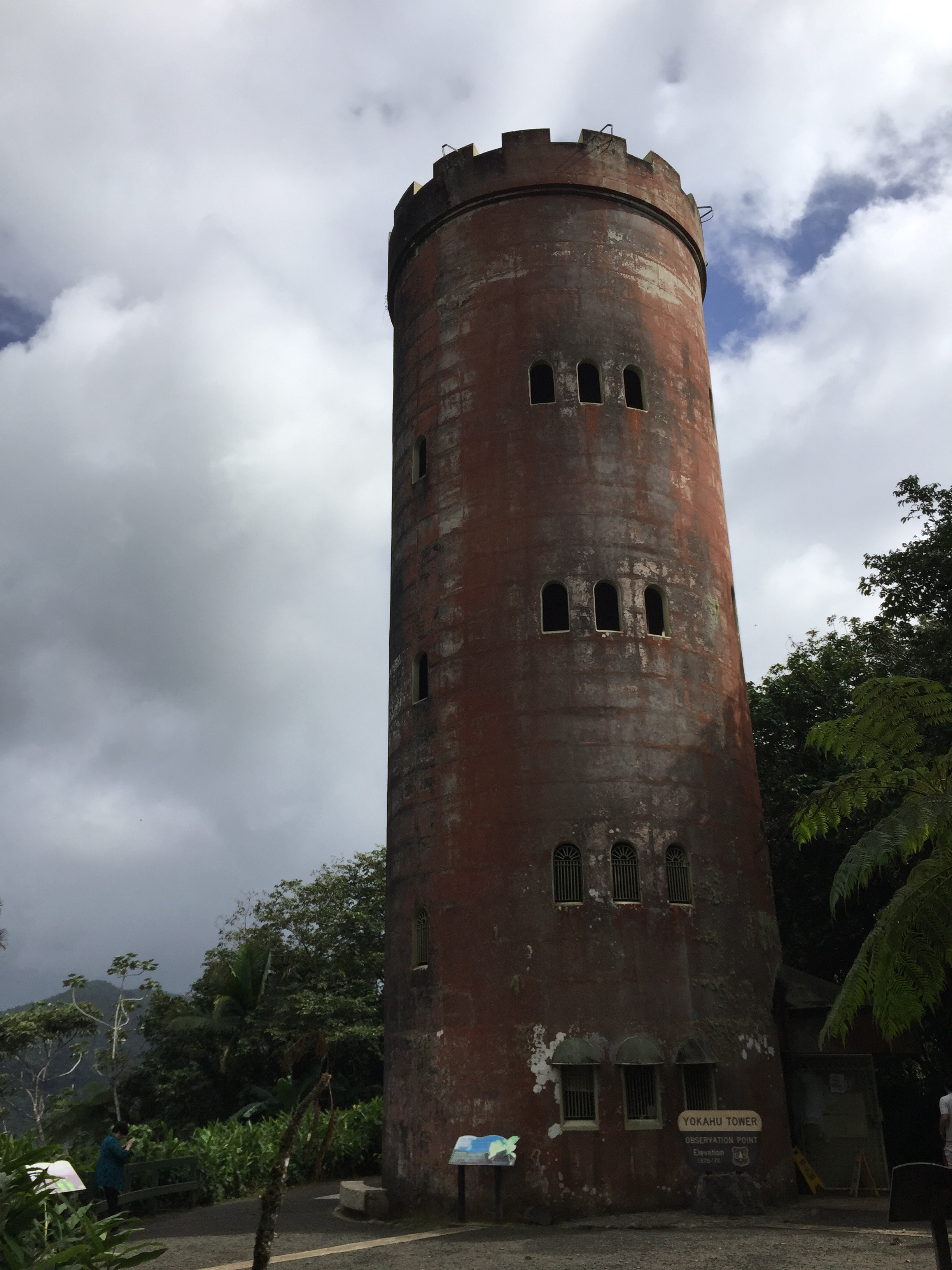 Yokahu Tower, El Yunque RainforestI didn’t make the climb up, but sticking around the bottom provided the view below, complete with rainbow. It was super fun for me since I had just said that I hoped we would get to see one since we had been getting rained on periodically the entire time in the forest. Word to the wise, it’s a rainforest, you’ll get rained on. If you don’t want to get wet, bring rain gear. You can buy a poncho in the visitor’s center, but bringing your own works just as well. Regardless, it was an “ask and you shall receive,” because wow, did we get a treat!